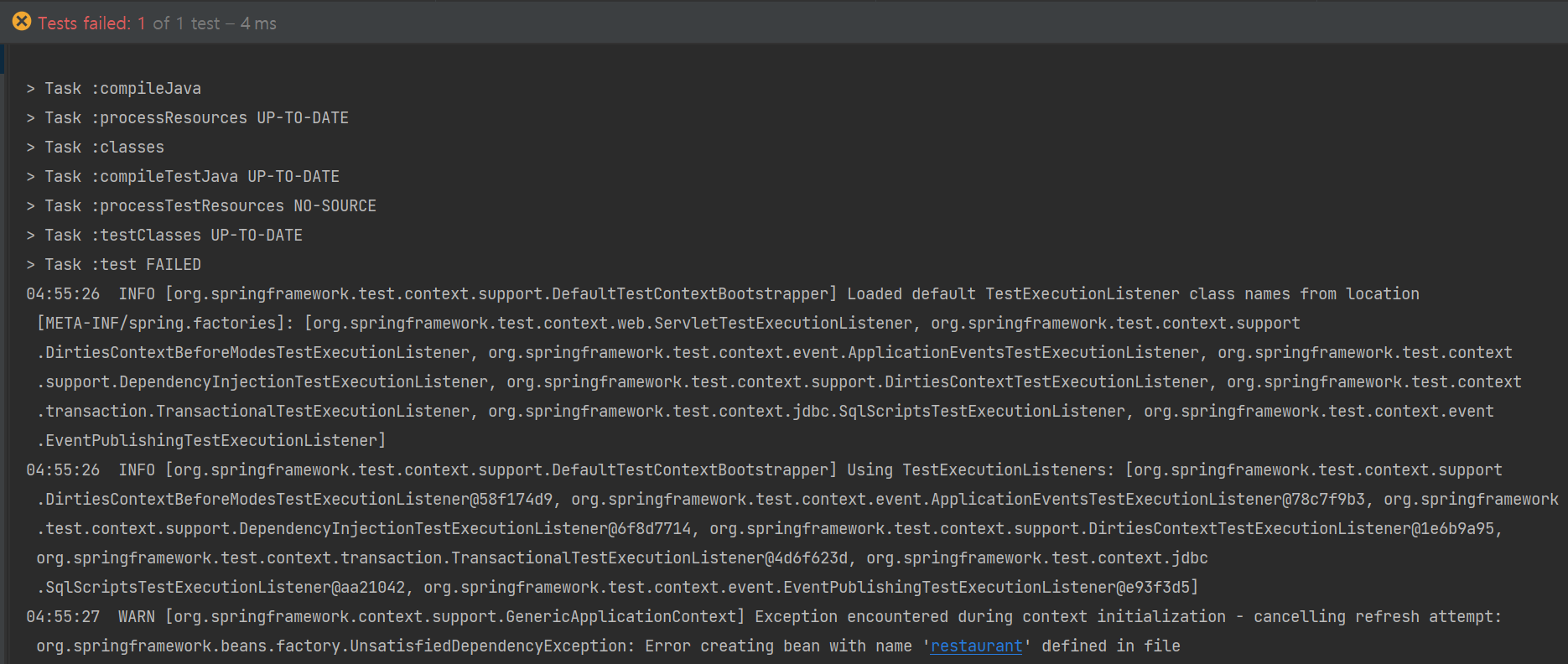 스프링은 하나라도 에러가 있으면 아예 뜨지 않는다!